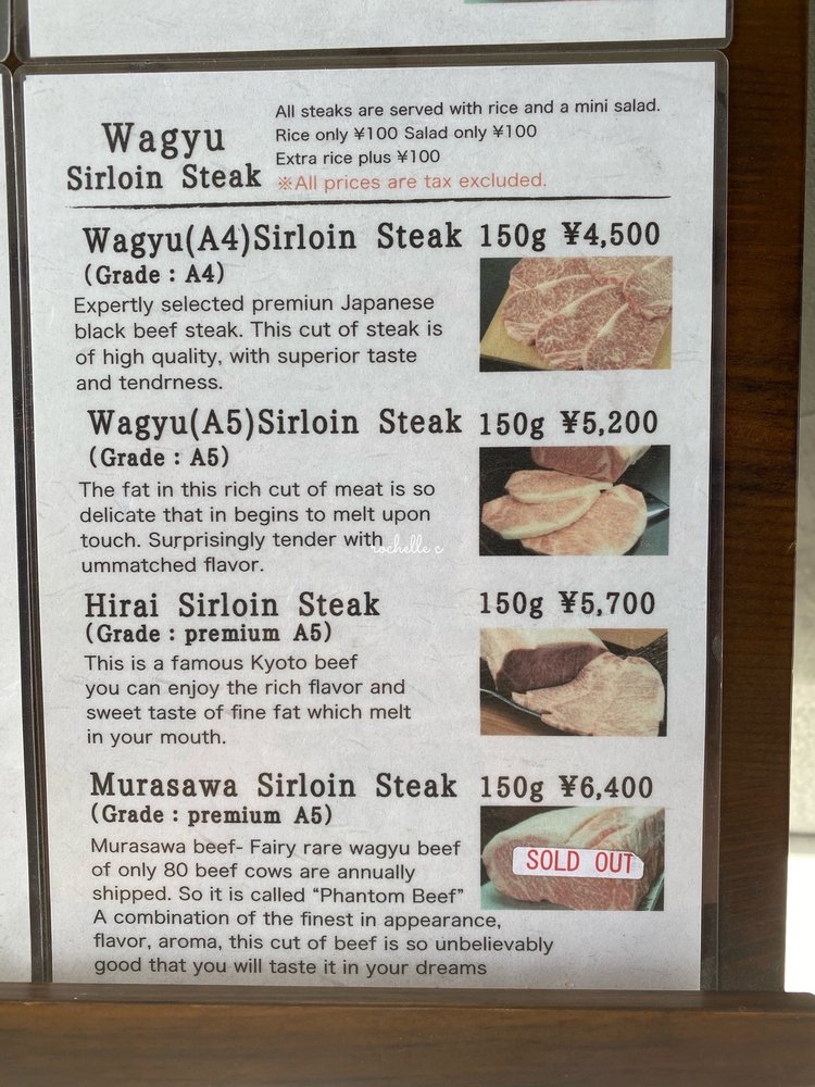 WAGYU SIRLOIN STEAK(All steaks are served with rice and a mini salad)